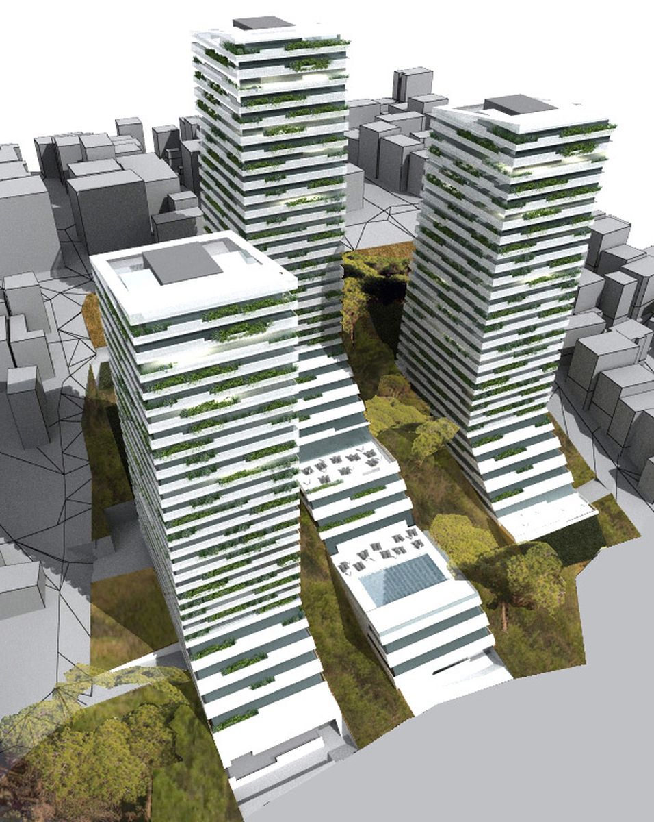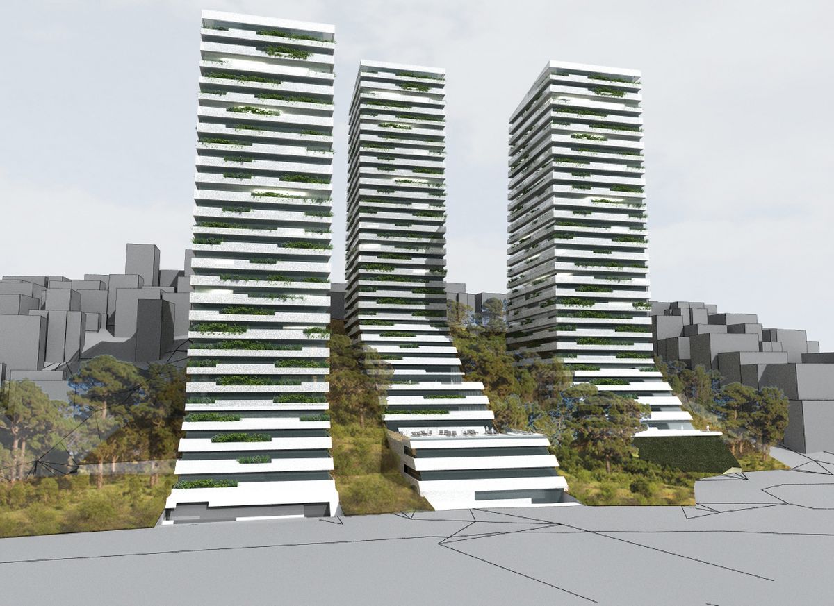 Located at Istanbul Turkey, Three residential towers are at a maximum distance from each other.