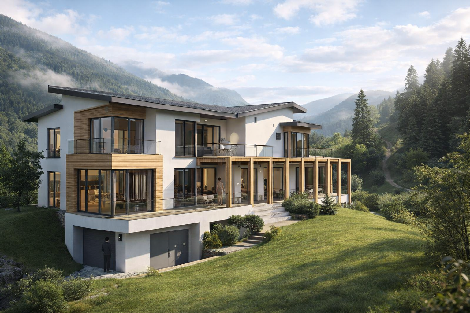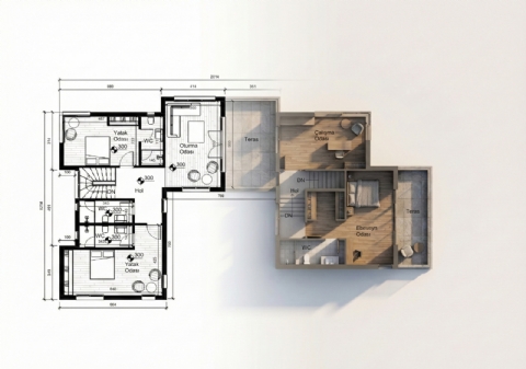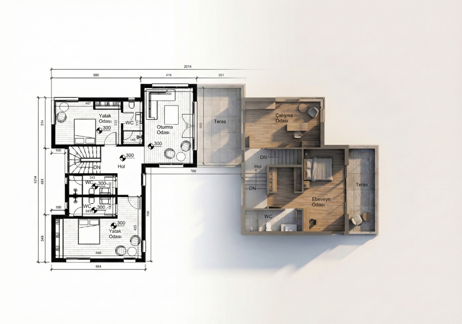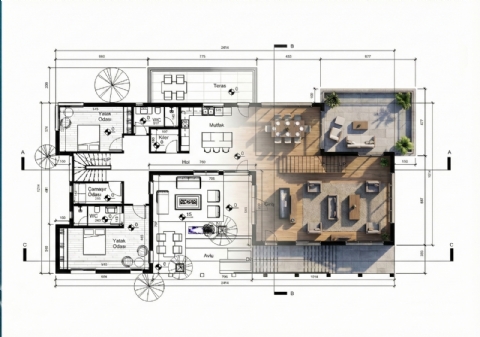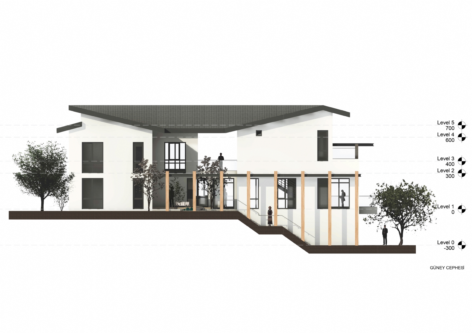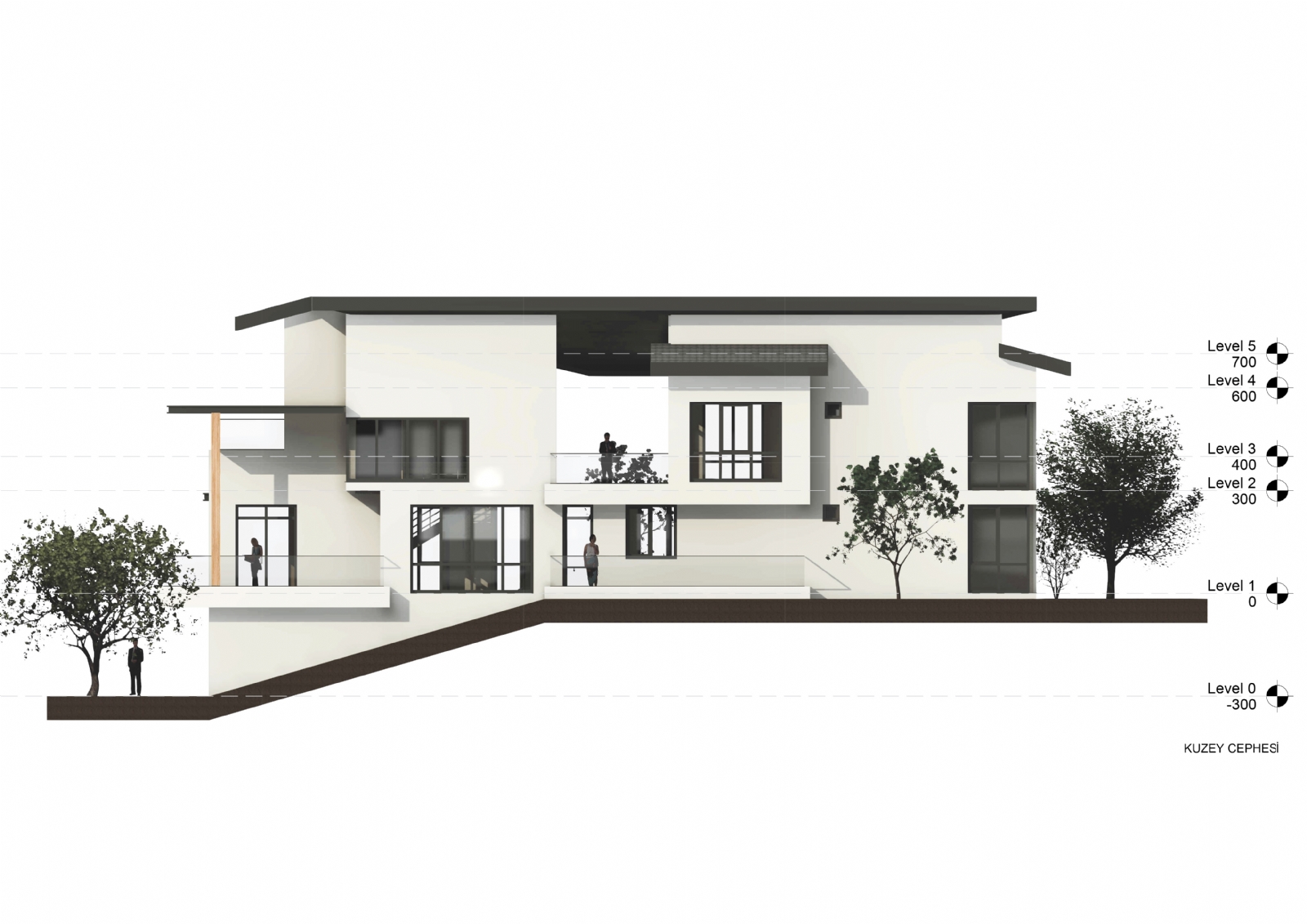 Karaman House is a contemporary residential project designed in harmony with its natural hillside setting. The architectural language emphasizes horizontality, transparency, and strong indoor–outdoor connections through generous terraces and large glazed surfaces.