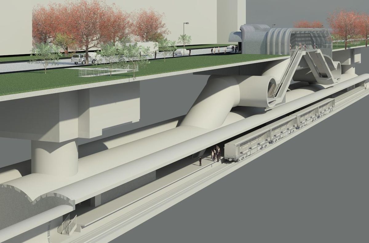 One of the Dudullu Bostanci metro line, Toki metro station has street level concors, technical areas in level -1, and the center platform with two vertical circulation system at level -2.
