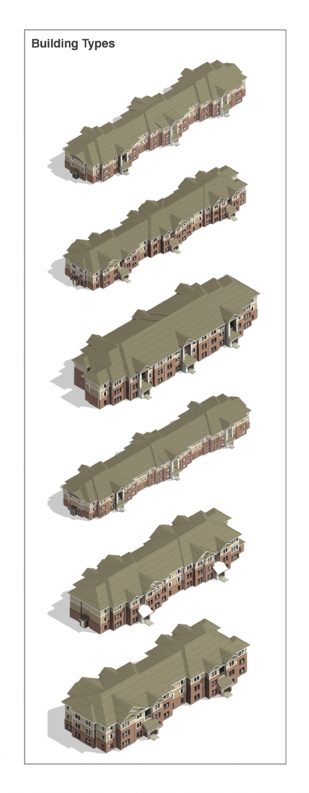 We provide a comprehensive, scalable approach to residential campus development, enabling the creation of high-quality, cohesive communities across multiple sites. Our method centers on the development and use of a unit and building typology library, which serves as a standardized toolkit for planning, designing, and delivering residential projects efficiently and consistently.